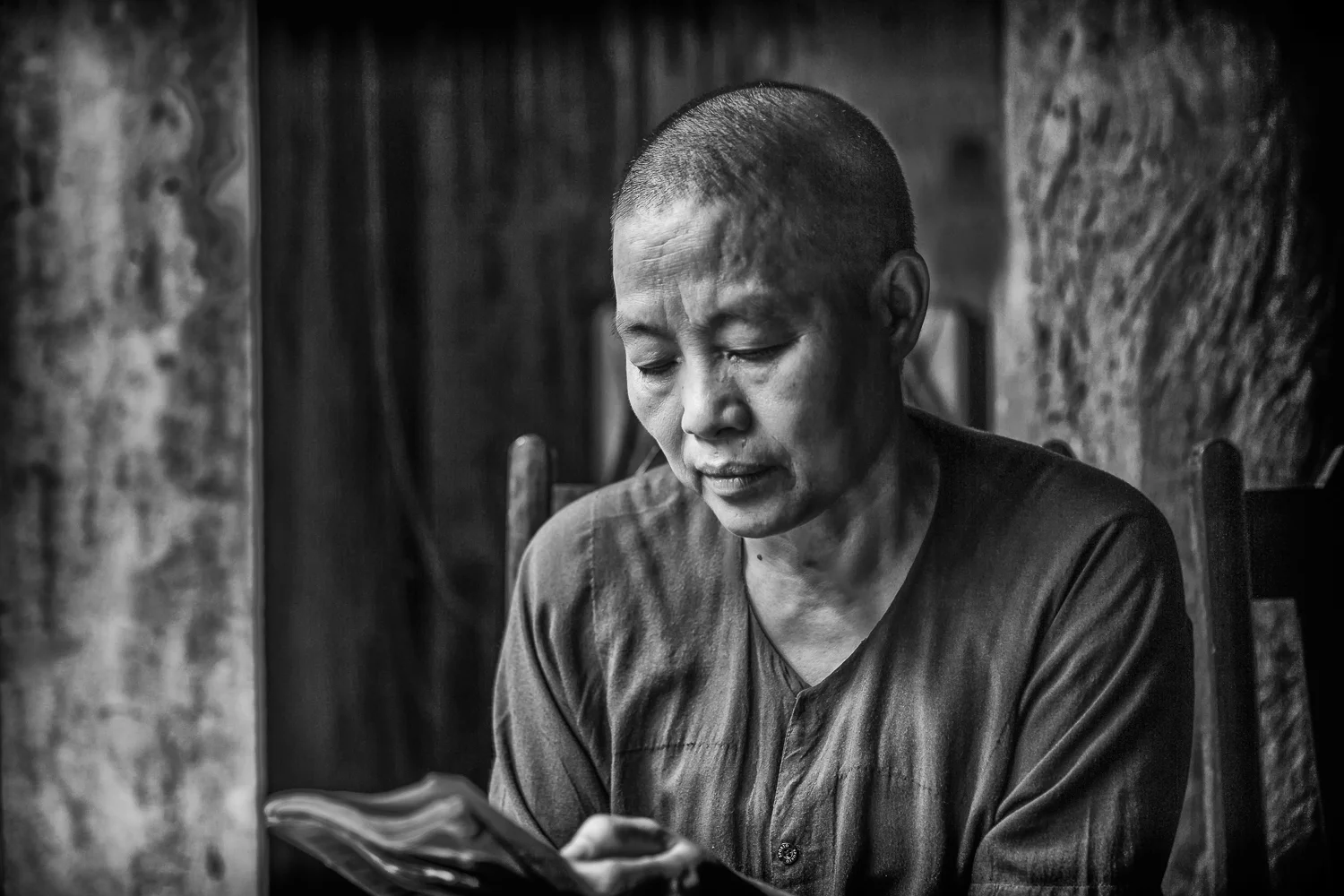 I was in Hanoi recently to wrap up a major project, the printing of my first book Hoi An Panorama, and to research a major new project for early in 2016. On one of my rare days off I travelled to Duong Lam Village, about 50 kilometers out of Hanoi where I had the privilege of hanging out with three female monks at a temple. I made a series of portraits of my newfound friends which I didn't mind in color, but they took on a whole new meaning for me when I converted them to black and white. Color can be such a distraction in some images and this series was particularly suited to a monochrome treatment. A few of my favorites are below and are also featured in my new "Black and White" gallery.